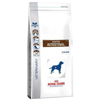 Royal Canin Gastro Intestinal GI 25. Сухой корм для собак, страдающих различными расстройствами пищеварения, среди которых: диарея, гибель кишечных ворсинок, отвечающих за усвоение питательных веществ организмом, сбой в работе поджелудочной железы, приводящий к дефициту ее ферментов, анорексия, язвенная болезнь. Суточный рацион подбирается, исходя из стандартов веса для определенной породы, и колеблется от 45 до 722 г корма в день. При недостаточном или избыточном весе доза корректируется – 52-821 г и 39-624 г в сутки, соответственно.