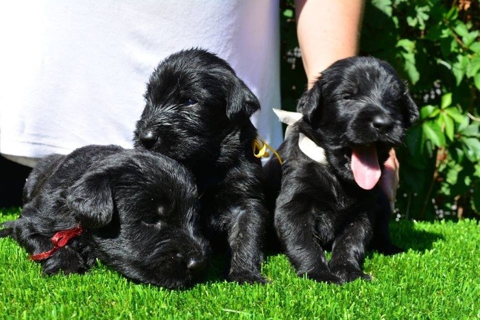 Что касается самого крупного представителя – ризеншнауцера, то щенка лучше покупать в возрасте 1,5-2 месяца. Малыши продолжают употреблять материнское молоко, но их можно приучать к дополнительному кормлению. Также в двухмесячном возрасте они быстро адаптируются к новому владельцу и дому. Лучше покупать щенка в питомнике – это гарантия получения собаки, имеющей хорошие рабочие качества и чистокровность.