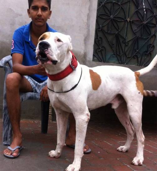 Это большой белый пес, очень недружелюбный внешне. Представитель породы достигает внушительных размеров – вес 46 кг, рост – до 67 см. Собака очень сильная, храбрая, часто используется на полицейской службе или в охранных целях. Однако на территории Великобритании содержать таких собак запрещено законом.