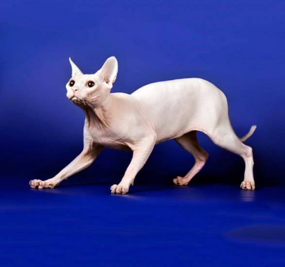 Кот родом из Санкт-Петербурга телосложением напоминает изящного Ориентала, а кожным покровом с подшерстком – мягкий замш. Поэтому он считается наиболее элегантным бесшерстным представителем, и относится к группе восточных кошек.