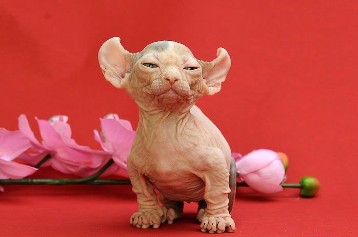 Они совершенно лысые, без единого волоска – результат закрепления доминантного гена. Гомозиготная Клеопатра рожала голых котят даже от обычных котов с шерстью.