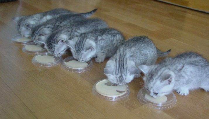 Консистенция предлагаемой пищи должна быть жидкой, чтобы юный шотландец мог легко ее принимать. То есть кашки должны быть не круто сваренными, какими их варят для взрослых котов, а жидкими, причем чем жиже будет мешанка, тем лучше.