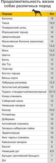 Таблица: сравнительные данные продолжительности жизни разных пород