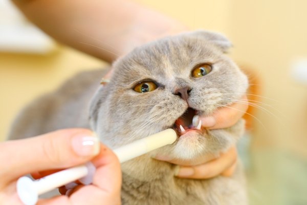 Чтобы дать лекарство кошке, нужно ее успокоить, взять на руки и хорошо зафиксировать. Далее в шприц набирается нужная доза лекарства, пасть открывается, препарат вводится медленно и аккуратно за щеку. Несколько минут нужно держать голову животного в приподнятом состоянии. После этого надо погладить кошку по шее для стимуляции глотательного рефлекса. Не забудьте поощрить животное за послушность.