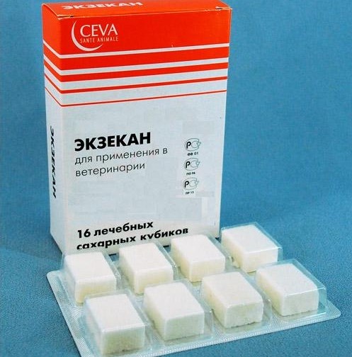 | Экзекан | Ceva Sante Animale (Франция) | Брикеты для перорального применения (в виде кубиков) | Дексаметазон, витамины иметионин | Инфекционные заболевания, сахарный диабет, беременность | В некоторых случаях тошнота, рвота | От 800 рублей за коробку (16 шт) |