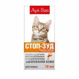 Стоп-зуд для кошек – высокоэффективный противовоспалительный препарат комплексного действия, который в ветеринарной практике применяют для лечения дерматологических заболеваний аллергической, воспалительной этиологии у животных. Данное средство кошкам также назначают при лечении дерматозов, осложненных вторичной бактериальной инфекцией (атопический дерматит, крапивница). Выпускается в форме суспензии бледно-желтого цвета для перорального приема, а также в виде спрея для наружного применения.