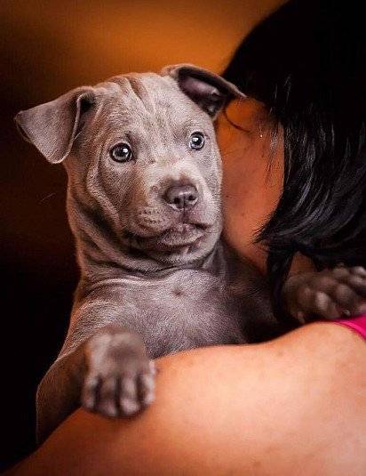 - Голубой. Встречается достаточно редко и имеет оттенки от нежно-голубого и дымчатого до темно-серого. Псы такого окраса наиболее популярны, но щенки часто рождаются с белыми пятнами на грудине. На выставки такие особи не допускаются.