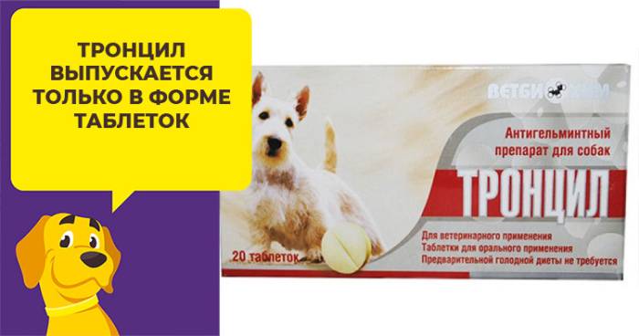 Тронцил – это эффективный глистогонный препарат, который применяется для лечения и профилактики собак от ленточных и круглых червей. Стоимость за упаковку составляет от 300 рублей. Несмотря на невысокий уровень токсичности для собаки и быстрое выведение из организма, прежде чем применять такой препарат, необходимо проконсультироваться с ветеринаром. Хранить медикамент нужно при температуре не более 20 градусов и только до 5 лет.
