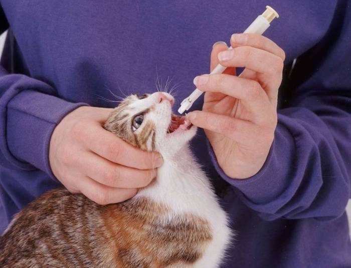 - с помощью шприца без иглы (ввести в рот питомцу раствор, приготовленный из измельченной в порошок таблетки и небольшого количества воды);