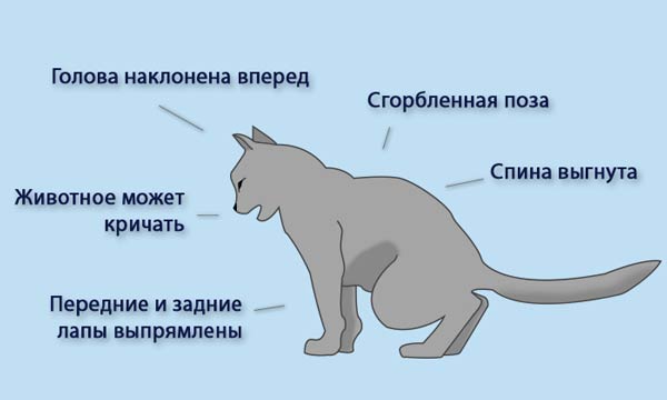 Поза при мочеиспускании кота с мочекаменной болезнью