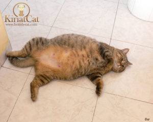 3. Беременность и роды. Нередко курдюк появляется у беременных кошек. Часто живот значительно увеличивается в размерах при многоплодной беременности, или когда плоды имеют очень большие размеры. Также курдюк может появиться сразу после родов у подтянутых миниатюрных кошек. Через несколько дней кожа войдет в тонус и живот подтянется.