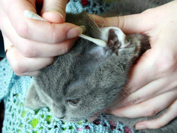 - ватной палочкой одним движением захватить как можно больше выделений из уха животного;