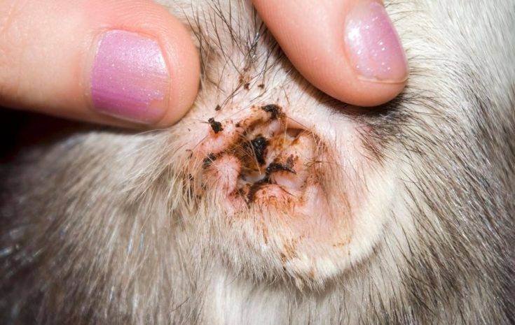 Симптомы поражения кошек ушным клещом