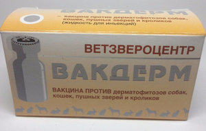 Вакдерм – вакцина с направленным действием на лечение и предупреждение дерматофитозов животных. Производится средство в РФ, выпускается в форме порошка и раствора для инъекций в ампулах (1 мл). Вакдерм имеет желто – коричневый цвет. При введении в организм животного медикамент вырабатывает иммунитет к микроспории и трихофитии.