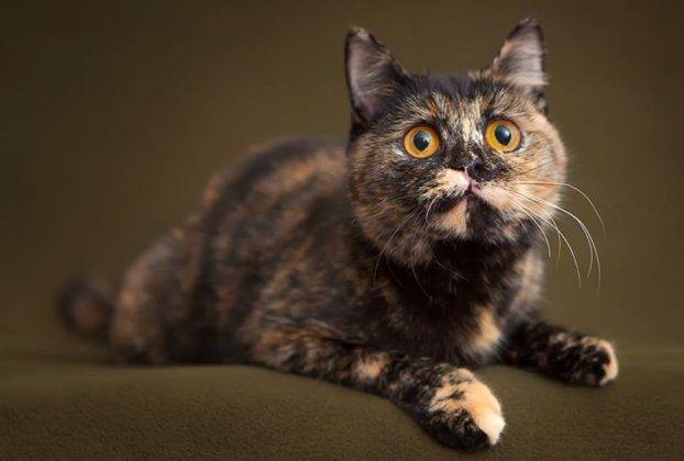 И неважно, как располагаются пятна на шерсти: смешаны ли они, будто в миксере, или напоминают сшитое из лоскутков покрывало — глаза у породистой черепаховой кошки (в отличие от метисов) всегда будут иметь жёлтый цвет, интенсивность которого, конечно, зависит от окраса и генетики животного